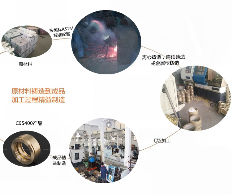 本產(chǎn)品實(shí)行ASTM標(biāo)準(zhǔn)………………………………………………… 根據(jù)客戶產(chǎn)品需求我們提供的鑄造方式有:離心鑄造,連續(xù)鑄造和金屬型鑄造。…………………………………………………………… 牌號(hào)C95400合金銅化學(xué)成分:Cu≥83 Fe3-5 Al10-11.5 Mn0.5 Ni1.5