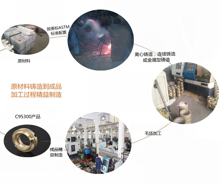 本產(chǎn)品實(shí)行ASTM標(biāo)準(zhǔn)………………………………………………… 根據(jù)客戶產(chǎn)品需求我們提供的鑄造方式有:離心鑄造,連續(xù)鑄造和金屬型鑄造?!?牌號C95300合金銅化學(xué)成分:Cu≥83 Fe0.75-1.5 Al9-11