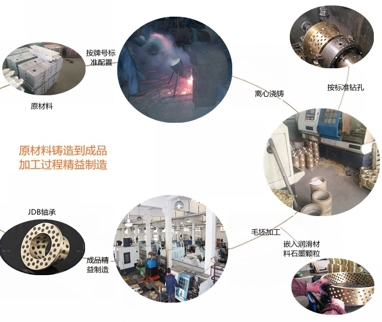 我們根據(jù)使用工況和環(huán)境要求,選擇不同的銅合金材料,如大氣環(huán)境選擇高力黃銅為基體;水環(huán)境下一般選用錫青銅為基體;高溫或海水腐蝕等工作環(huán)境選用鋁青銅為基體;其他特殊工況環(huán)境選擇相應(yīng)的銅合金材料為基體;然后根據(jù)產(chǎn)品的實(shí)際受力情況和運(yùn)動(dòng)方式,確定潤滑劑的排布方式和密度,以求達(dá)到最佳使用效果和壽命。 銅石墨軸承使用廣泛,如冶金機(jī)械,工程機(jī)械,注塑機(jī)械,水利機(jī)械,海工裝備,風(fēng)電設(shè)備,模具行業(yè),印刷包裝機(jī)械,礦山設(shè)備,石油化工機(jī)械,各種輕工機(jī)械等等。