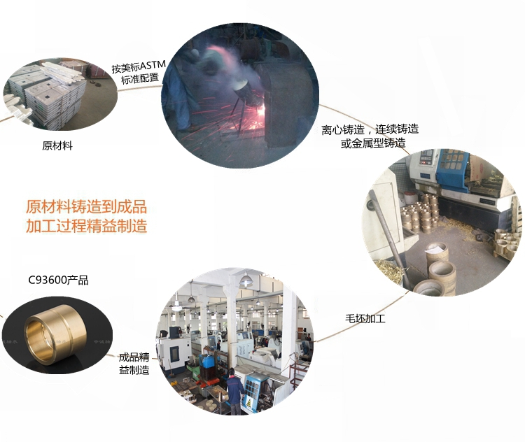 本產(chǎn)品實行ASTM標(biāo)準(zhǔn)………………………………………………… 根據(jù)客戶產(chǎn)品需求我們提供的鑄造方式有:離心鑄造,連續(xù)鑄造和金屬型鑄造?!?牌號C93600合金銅化學(xué)成分:Cu79-83 Sn6-8 Pb11-13 Zn1 Fe0.2 Al0.005 Si0.005 Ni1 Sb0.55 P1.5 S0.08